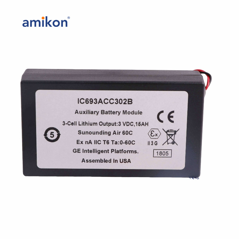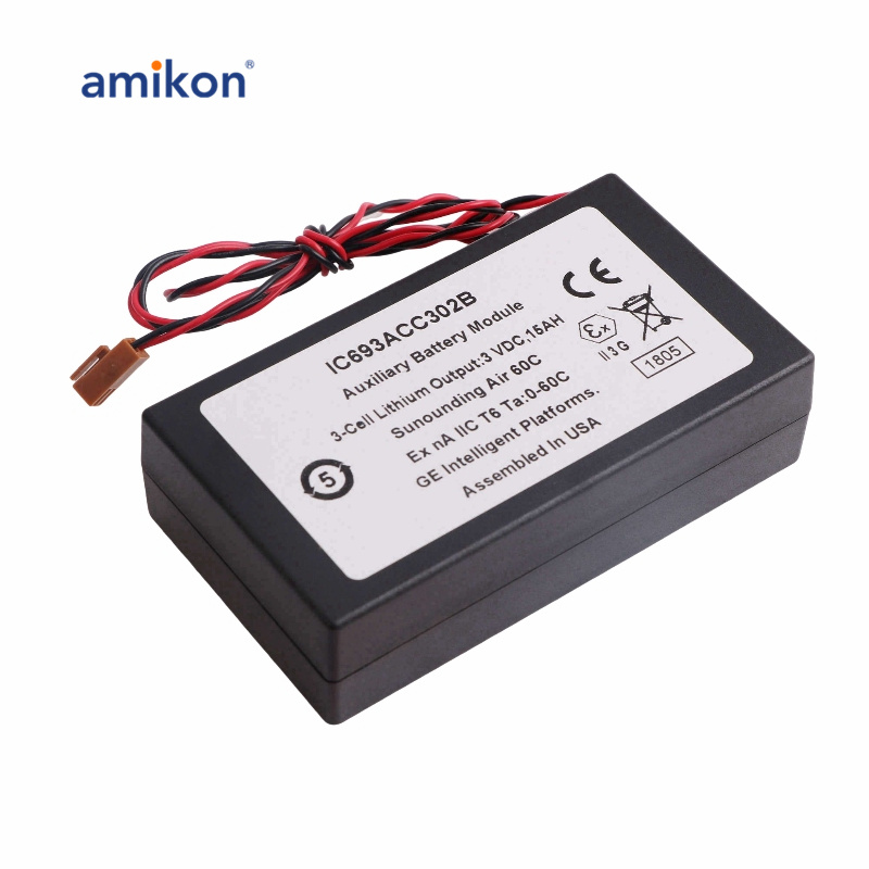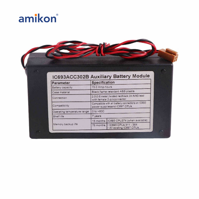 O IC693ACC302 é feito de plástico ABS preto retardador de chamas e fornecido com um cabo 24 AWG vermelho/preto torcido de 2,0' (0,6 metros) com conector fêmea de 2 pinos que conecta a bateria ao módulo. |