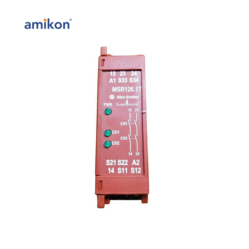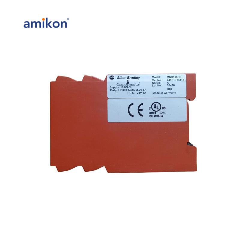 Relé de segurança de monitoramento da série B usado com os inversores da série com designação 1336T, que pode ser reconhecido como a primeira parte do código de produto ou número de catálogo de três partes. |